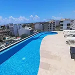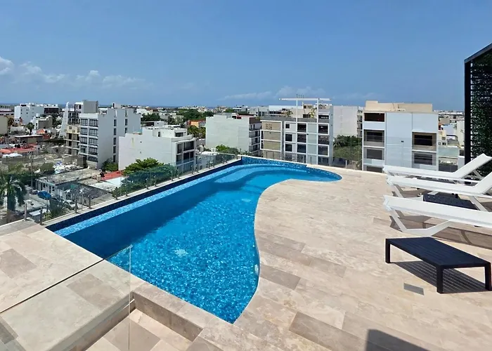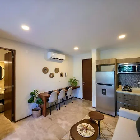 Cozy Studio With King Bed, Rooftop Pool And Fast Wi-Fi 普拉亚卡门俯瞰着城市,离哈曼河观鸟开车约需10分钟。 这套1间卧室的公寓设有露台和大厨房。